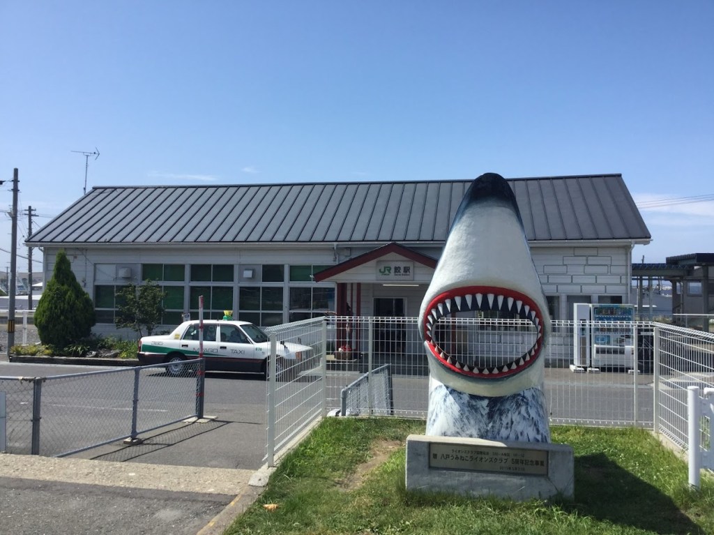 最寄り駅の「鮫駅」もなかなか個性的で、合わせて観光を楽しめます。