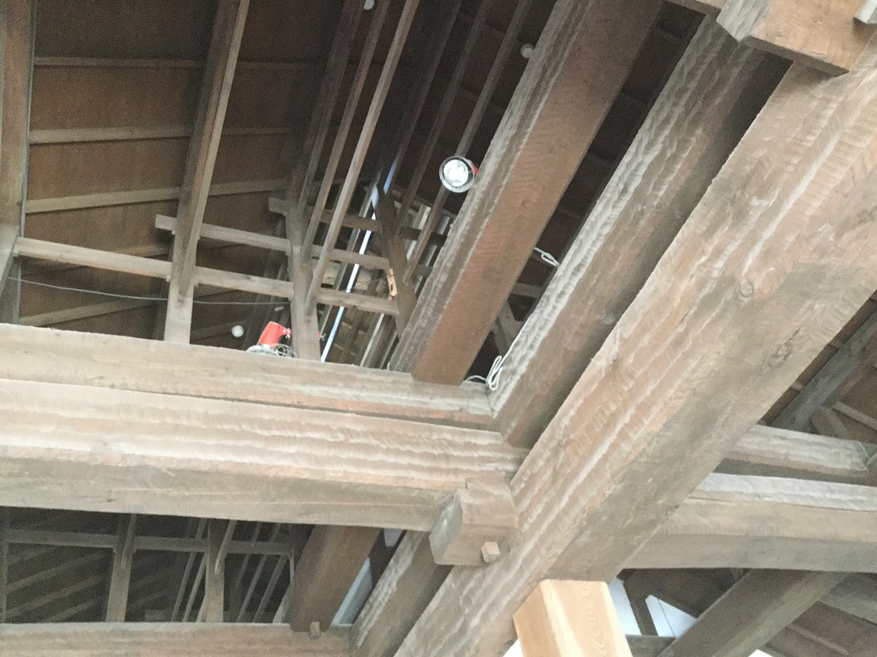 曳戻し工事を予定しているそうで、上記写真のように天守閣が移動している状況です。