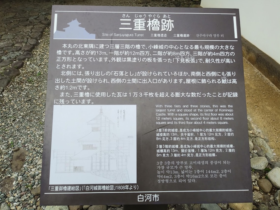 | 観光時間の目安 | 1時間30分 ~ 2時間程度 | 管理が行き届いて、敷地内全体が見所になってました。 主殿内は、当時の雰囲気が伝わってきました。 |