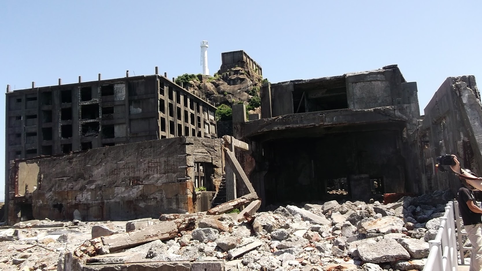 「端島炭鉱」が本来の名称ですが、島全体が軍艦のような形をしていることから俗称で「軍艦島」と呼ばれるようになったそうです。