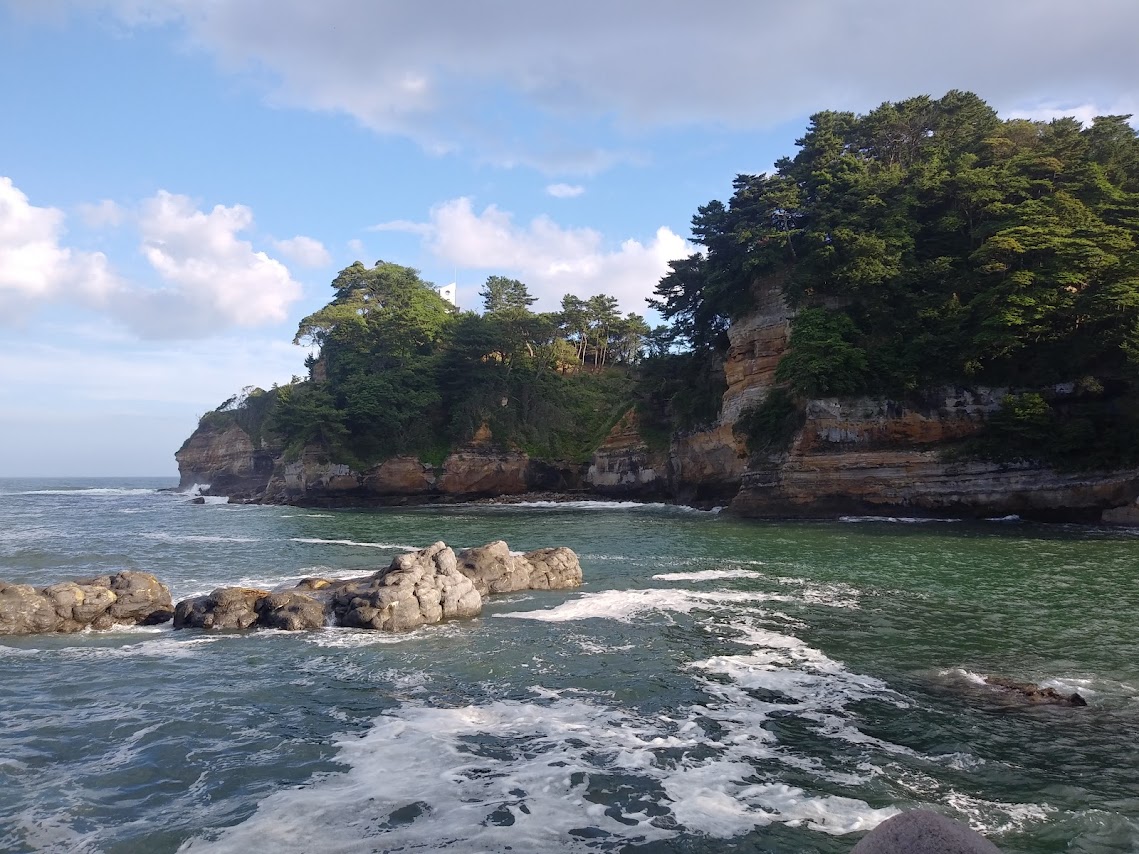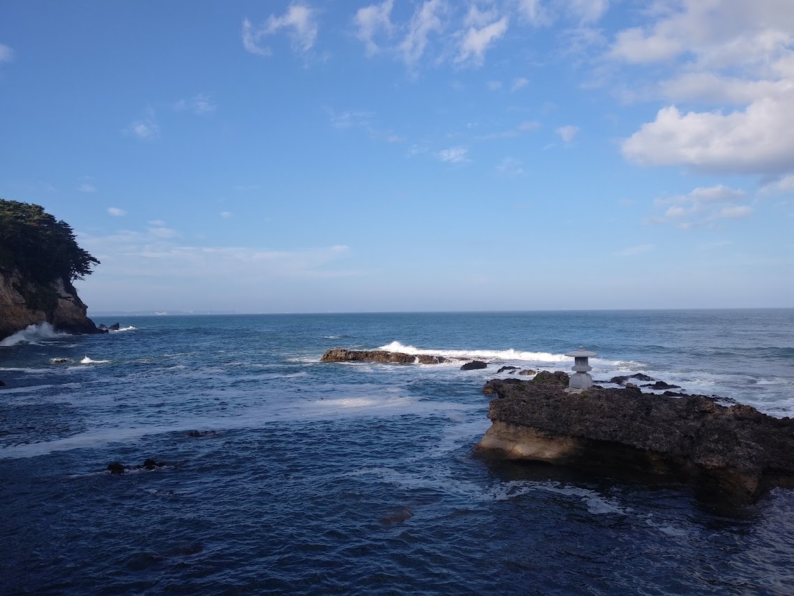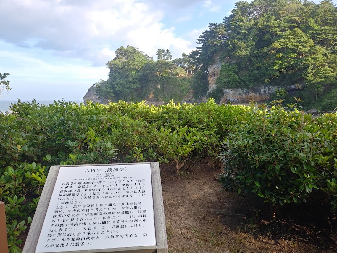 六角堂付近に立つ(建造物内には入れませんが・・・)と、海岸の白波のダイナミックさと雄大な景色が目を見張ります。